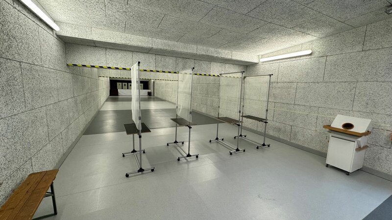 - 25m dynamisch, zugelassen für Kurz- und Langwaffen (Klein- und Großkaliber) bis max. 2.500 Joule einschließlich Flinten (derzeit im Umbau)